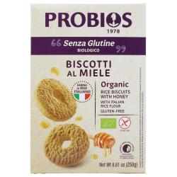I Giullari al Miele Probios sono dolci biscotti a forma di ciambellina a base di farina di riso italiano. Ideali da inzuppare nella tua bevanda preferita per colazione, sono ottimi anche come dolce conclusione del pasto! I Giullari al Miele Probios sono garantiti senza latte e senza glutine, mutuabili dal SSN. Confezionati nel nuovo ecopack amico della natura, con astuccio in carta e sacchetto interno in materiale compostabile. Disponibili in formato da 250g.