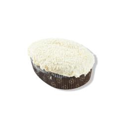 Ingredienti: miscela base (zucchero a velo, amido di mais, emulsionanti: E472b, E477, E471; proteine di patata, agenti lievitanti: E450i, E500ii; fibra vegetale: psyllium; farina di SOIA, addensante: gomma di guar; conservante: potassio sorbato; aromi); UOVA pastorizzate, farcitura alla crema (acqua, zucchero, sciroppo di glucosio-fruttosio, amido modificato: E1442 (mais); coloranti: E516, E160a; stabilizzanti: E460, E466; sale, conservante: E202, regolatori di acidità: E330, E332ii; aromi); cioccolato bianco (15%) (zucchero, burro di cacao, LATTE in polvere, siero di LATTE in polvere, emulsionante: lecitine di girasole; aroma naturale di vaniglia); cioccolato bianco (6%) (zucchero, LATTE intero in polvere, burro di cacao, emulsionante: lecitina di SOIA, aromi); olio di semi di girasole, LATTE intero UHT, conservante: E202.